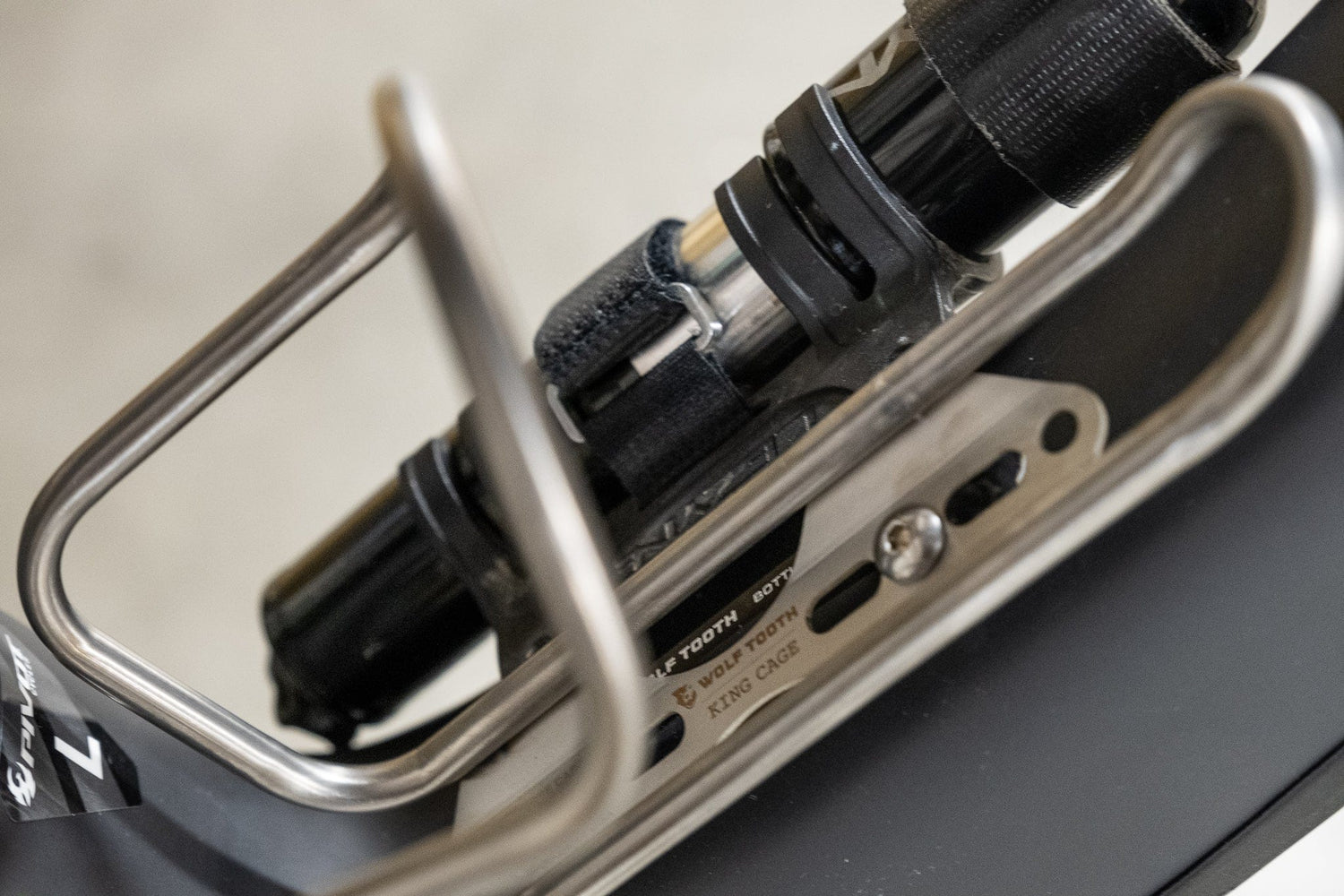 Slots and extra tapped holes in the mount provide 18mm of bottle position adjustment. This allows the bottle to be mounted as low as possible in the frame for improved clearance or moved upward for easier reach