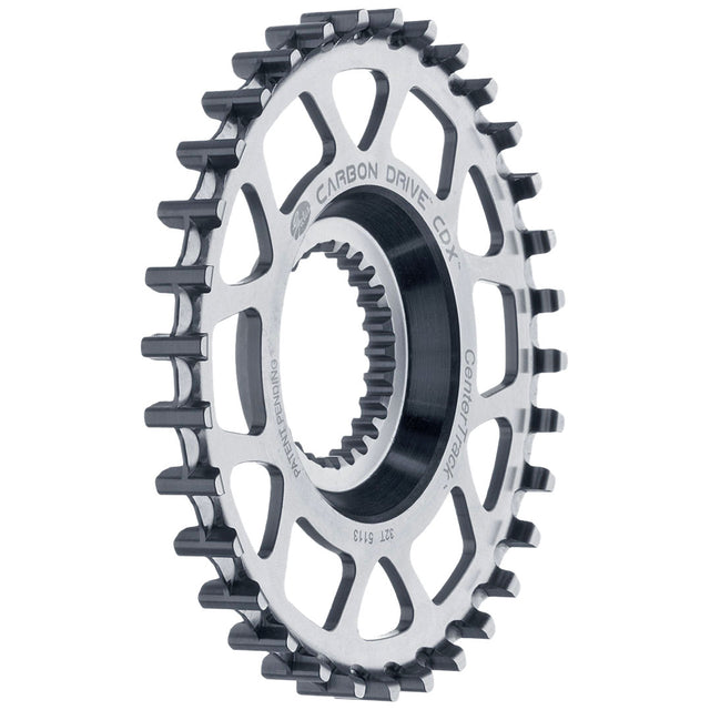 - Superlight machined aluminum sprocket with CenterTrack guide ridge \n- Available in two standard bolt circle configurations to fit most cranks, with specific version for Shimano Di2 specific chainline offset and tandem specific drivetrains\n- Compatible only with CDX CenterTrack belts\n- Visit http://www.gatescarbondrive.com/ or download the Gates Carbon Drive iPhone app for drivetrain calculations and tension analysis
