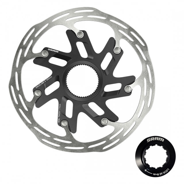 BRAKE PART SRAM DISC ROTOR 160 PACELINE-X CL ROUNDED w/LOCK RING BK/SL (P)