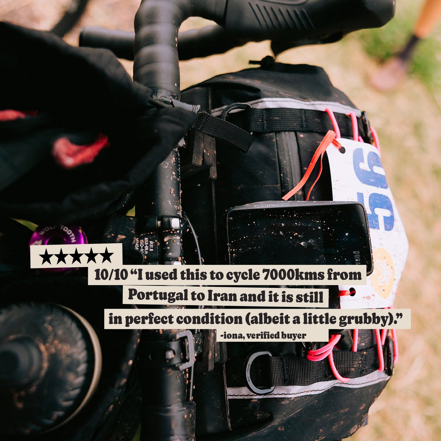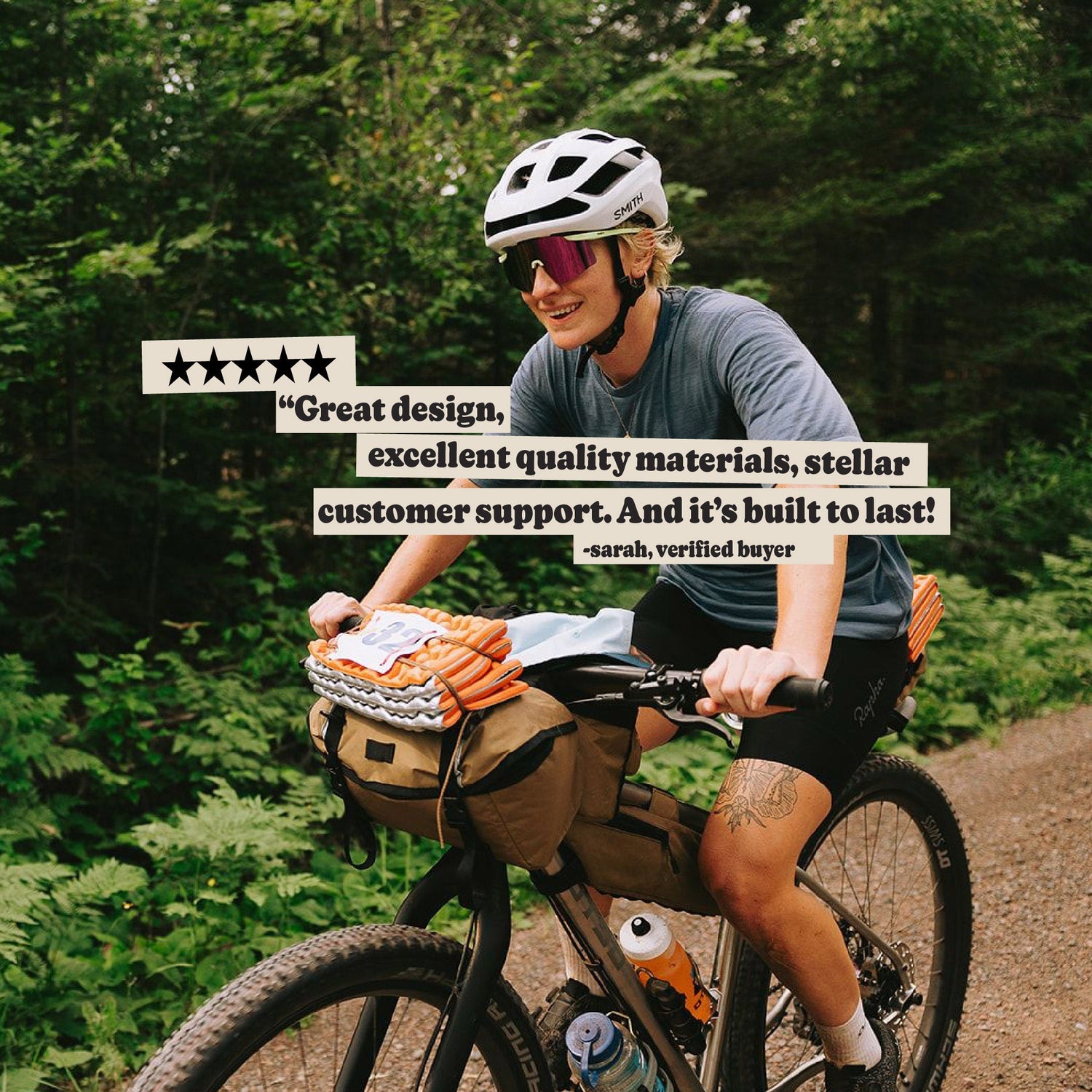 At a svelte 7.5L, the Catalyst Pack has easily made its way onto our top-seller list as a go-to gravel adventure bag. Riders with less clearance and narrow handlebars now have a stellar option for stowing gear on their handlebars and under the saddle. Add carrying capacity to this item with a Bungee Booster.