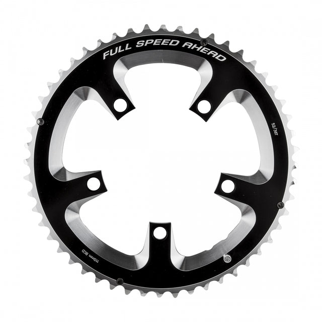 • FSA, 52T, 10/11sp., BCD: 110mm, 5 Bolts, Super Road, Outer Chainring, For Double, Aluminum, Black, 371-0252A