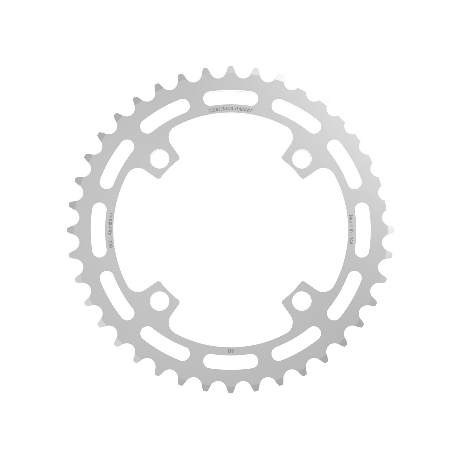Last but not least, this beast of a chainring is American made from 6061 aluminum, so when people ask you what you're riding, tell them, “the future.”