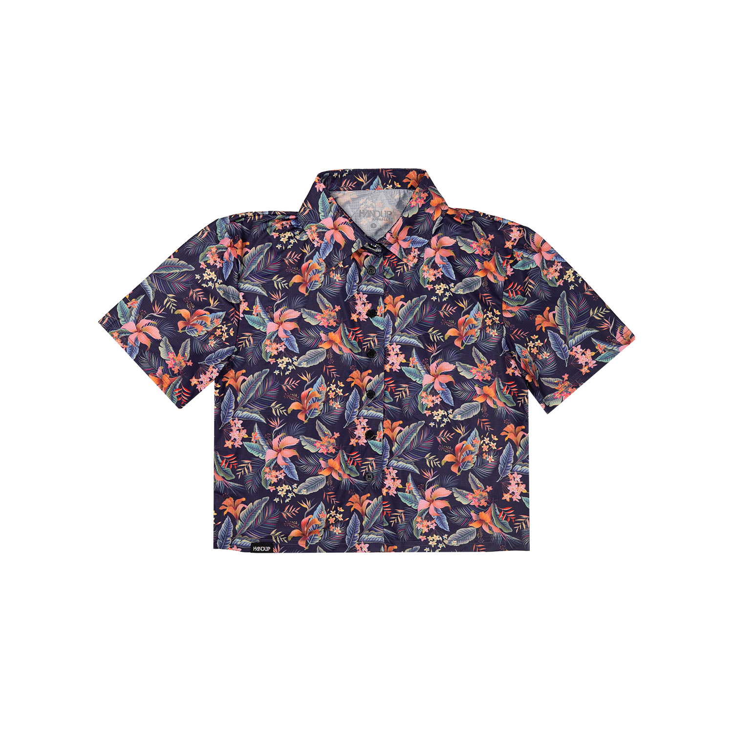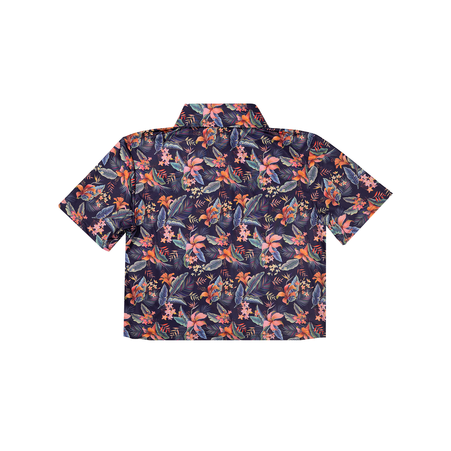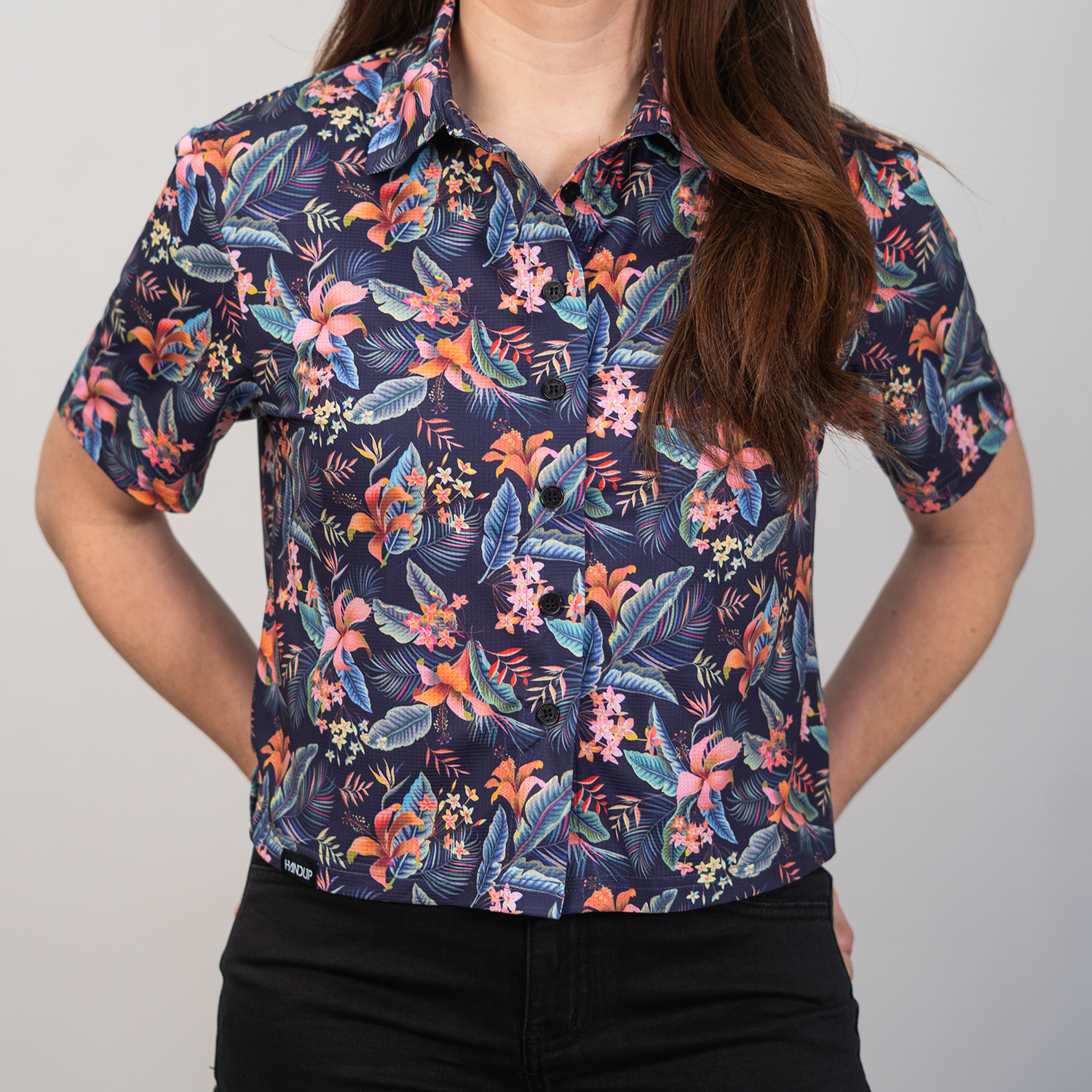 Cropped FlexGRID Button Up - Midnight in Maui - X SMALL is backordered and will ship as soon as it is back in stock.