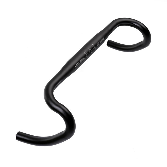 - Ergonomically comfortable with extra ‘flare’ for added control. Ideal for CX, gravel, touring and commuting, these bars are favored by off road, drop bar riders in particular\n- Drove bars feature enhanced bar width, flaring outwards 16° through the drop section\n- Durable shot peened and anodized finish with cable groove indents\n- 23.8mm tube with 31.8mm stem clamp bulge\n- 16 degree flare angle with 86mm reach, 130mm drop. Widths are measured at the lever clamp area\n- 6061 T6 butted, heat treated aluminum alloy