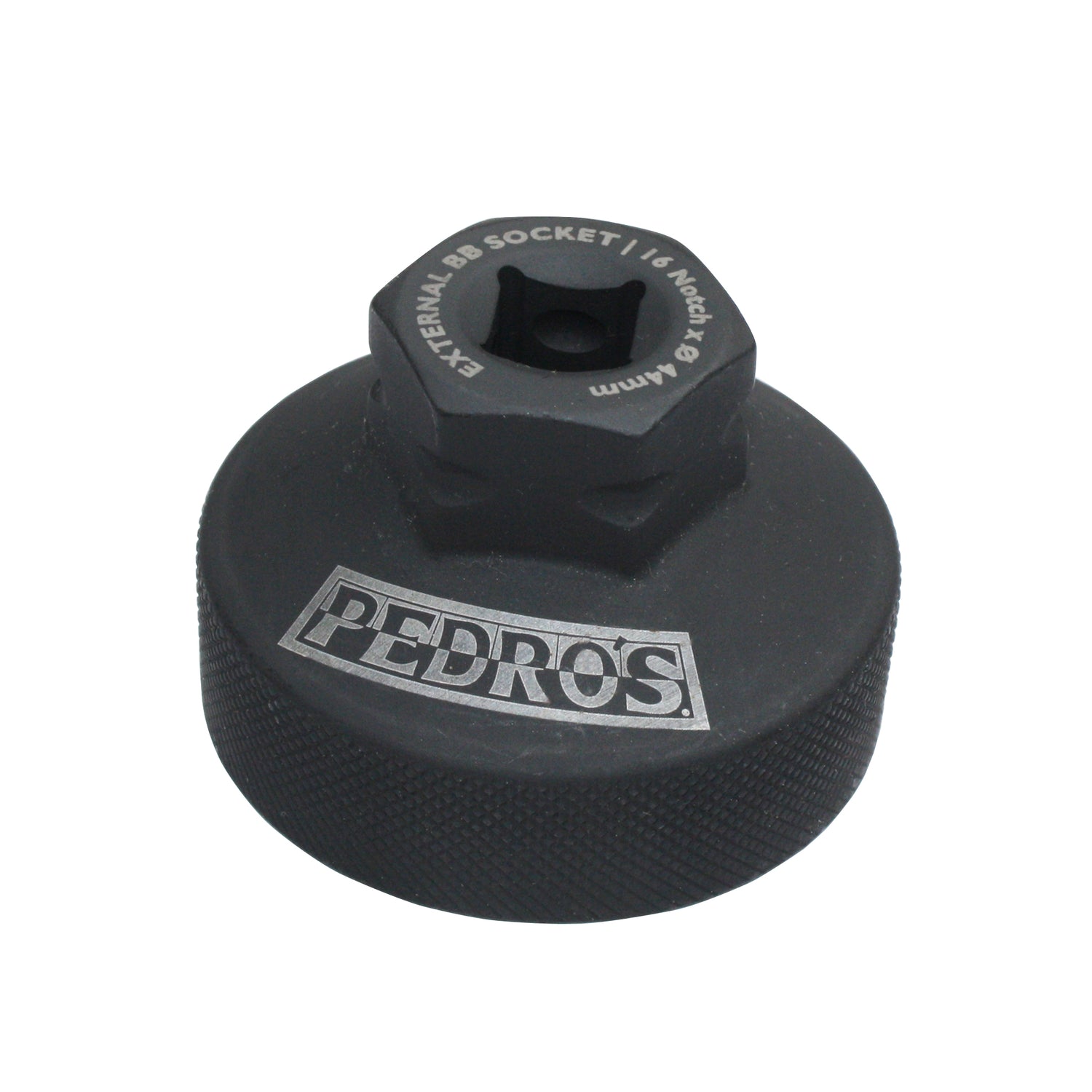 - Fits all 16-notch x 44mm external bearing bottom bracket cups and updated design also fits 16-notch x 44mm disc brake lockrings and Shimano TL-FC24 and TL-FC25 adapters\n- Updated design features a square 3/8" drive and also works with Pedro's Pro Socket Handle, 24mm socket or wrench, or in a bench vise
