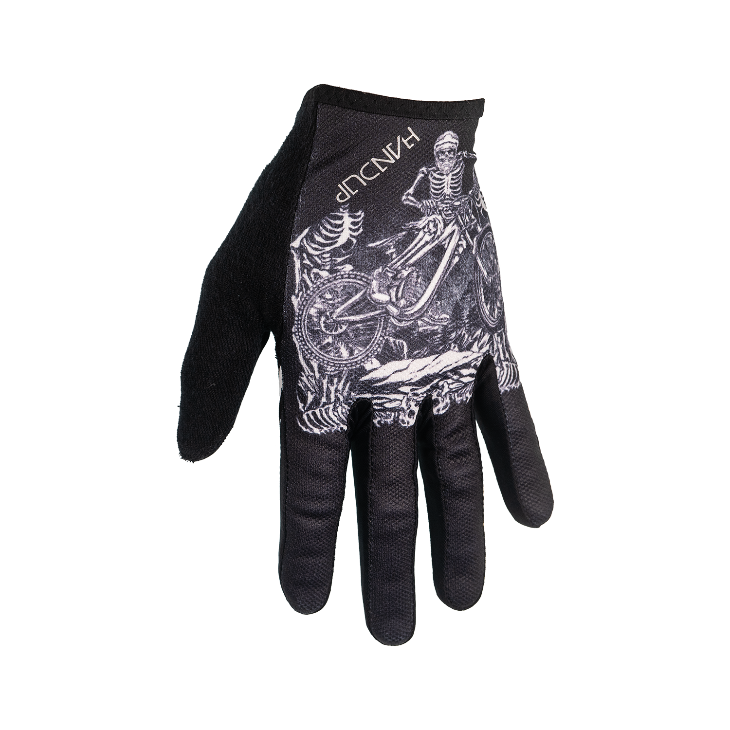 For those who treat every ride like a headbanging solo, the Death Pedal design brings brutal style to the trail! Featuring a death metal band-inspired design—think jagged fonts, skulls, and a rider whippin' a huge gap—these gloves are made for riders who crush trails as hard as a double bass drum blast.
