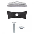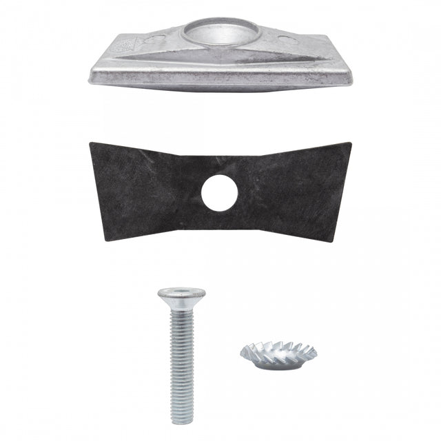 Includes plate, gasket, and countersunk/flathead screw with serrated washer