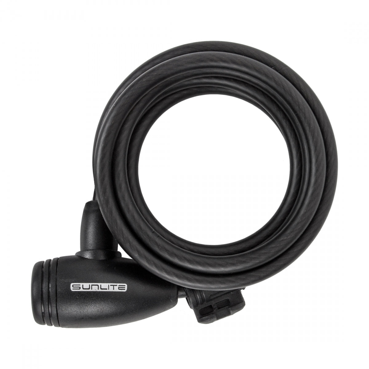 LOCK SUNLT CBL 8mmx6f KEY W/BRKT COIL BK