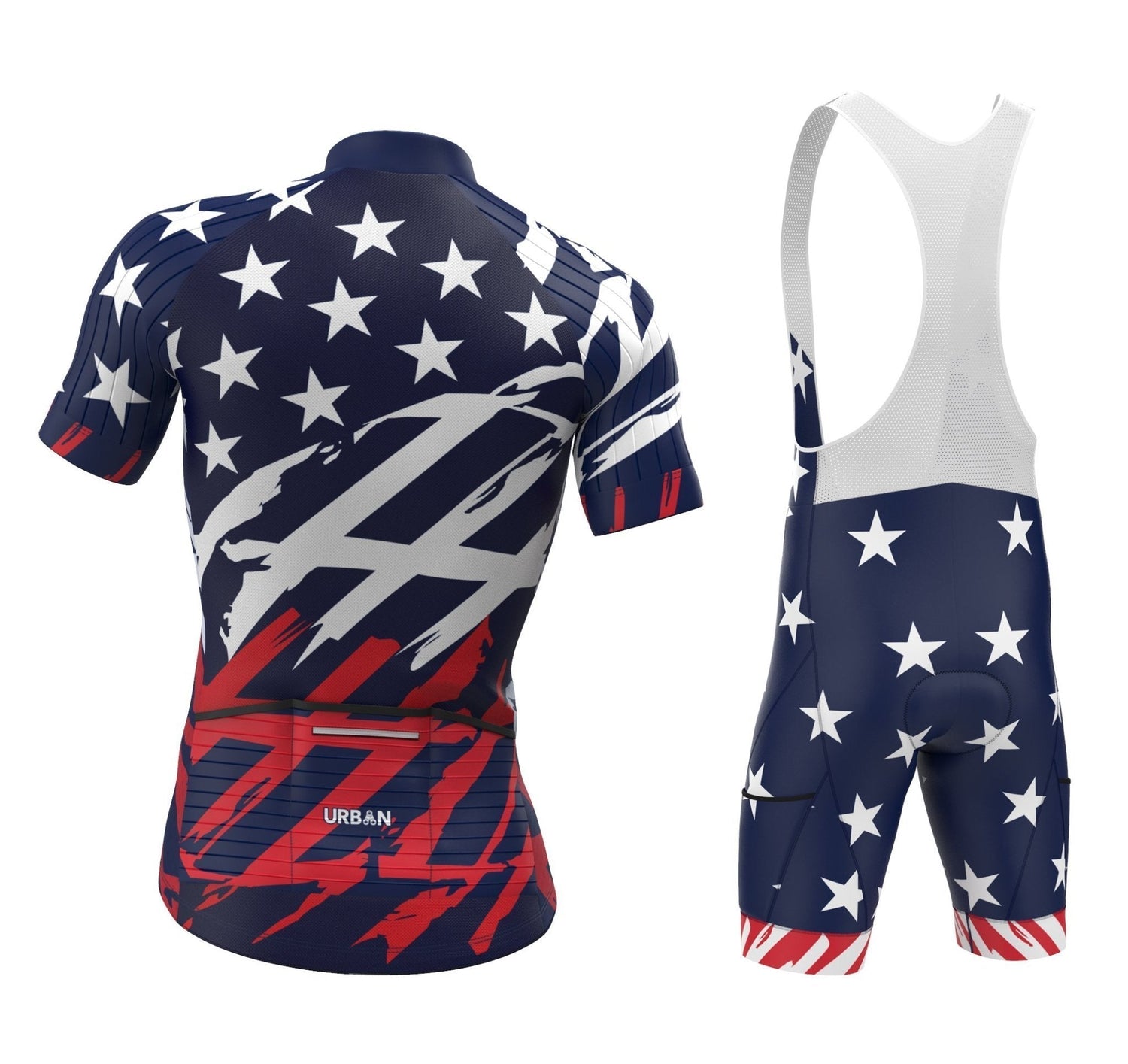 Designed in the U.S.A. for our pro athletes seeking comfort and performance. Our engineers obsess over anatomic fit, aerodynamics, safety, and fabric innovation so you can focus on your ride. These lightweight and breathable jerseys and bib shorts keep you feeling comfortable and dry. The Urban printed elastic grippers hold the jersey and short edges in place and from riding up. The longer shaped back is well suited for cycling riding position. The Jersey is a full length zipper with 3 rear pockets plus an extra zipped pocket for your valuables. Reflectors on both the back and thighs were added for dusk and night riding. BONUS: These bib shorts have a mobile phone pocket!