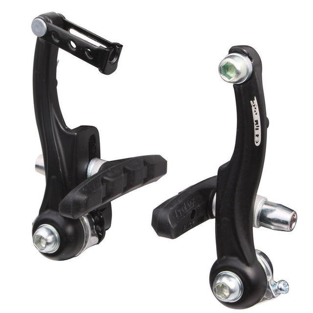 - Short 85mm forged aluminum arm linear brake, for use with standard pull levers and STI\n- Ideal for Touring, Cyclocross, BMX, etc \n- Micro-adjust linear springs and angle adjustable threaded pads included
