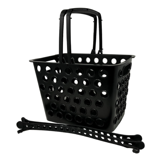 Great basket for carrying groceries or other stuff. Includes 2 carry handles and molded in High Impact PP. Includes 2 durable rubber straps to mount on your favorite rack. Large capacity, one of the biggest baskets on the market. -Universal fit on racks including ebikes, fat tire racks, scooters, motorcycles, or just use to make your rounds to the grocery store. -Dimensions: 13" x 9" 10.5" -Volume: 1200 ci -Weighs 2 lbs. 5 ounces