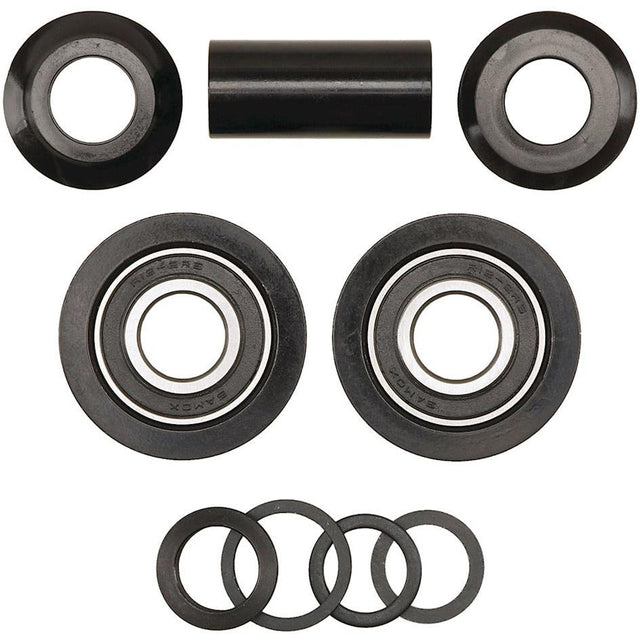The Outburst american bottom bracket. Includes two precision sealed bearings, aluminum cups, high-density plastic cone spacers, center tube spacer, sprocket, And adjustment washers.
