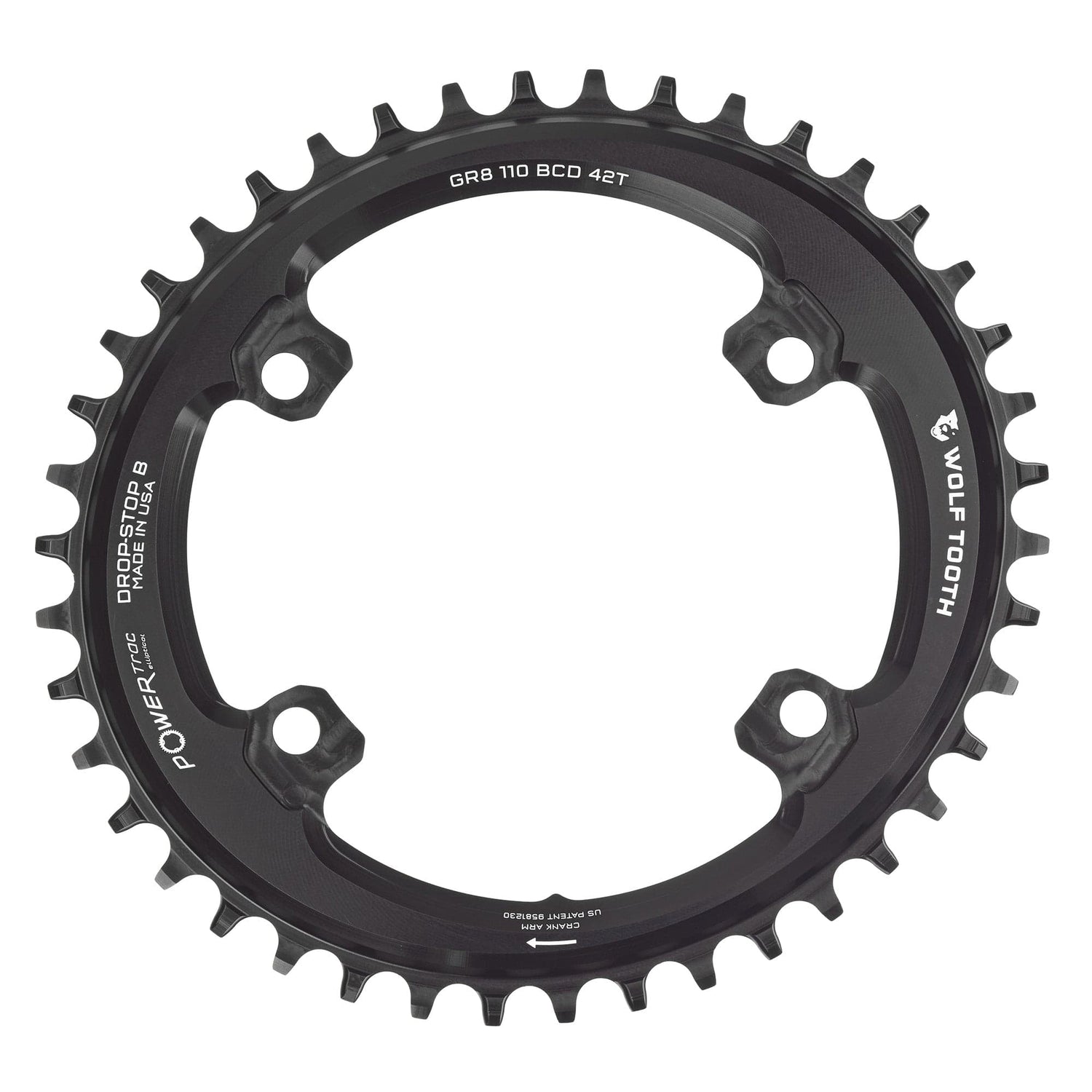 - Wolf Tooth’s patented Drop-Stop wide/narrow tooth profile provides the ultimate chain retention and mud-shedding ability