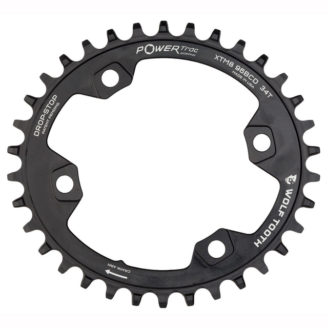 - Wolf Tooth’s patented Drop-Stop® wide/narrow tooth profile for the ultimate chain retention and mud shedding ability