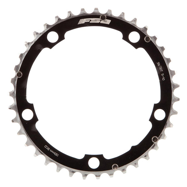 • FSA, 39T, 10sp., BCD: 130mm, 5 Bolts, Intérieur Chainring, For Road triple, Aluminum, Black, 370-0239