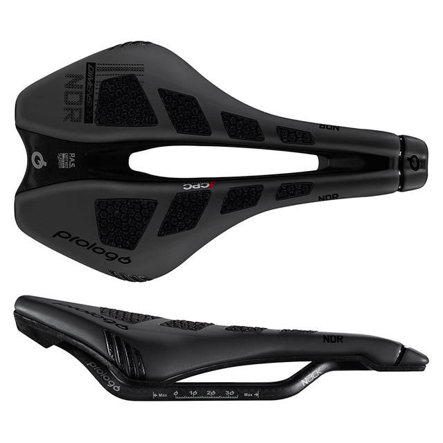 Dimension NDR features the same overall shape as the standard dimension saddles with 3mm of extra padding and side protectors to avoid scratches and abrasions when the going get a little too tough. Dimension saddles feature a redesigned overall shape with shorter nose made to be more comfortable for both men and women riders by spreading pressure areas more evenly - especially in an aero position. The increased 143mm width helps to distribute the weight of the athletes on a larger surface ensuring greater comfort for long rides. Nack models feature a Nano Carbon composite rail paired with reinforced seat clamp area for the perfect fusion of performance and reliability. PAS - features a channel in the seat to alleviate pressure and numbness in the pelvic region by promoting healthy perineal blood flow. CPC Models feature material on top of the saddle that provides higher grip better airflow and vibration absorption. Carbon injection monocoque base