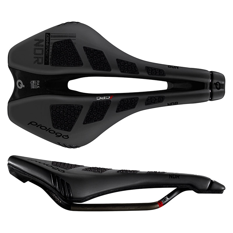 Prologo Dimension NDR CPC Saddle - Tirox Anthracite/Black 143 mm. Born to be off-road oriented the Dimension NDR is a unisex multi-discipline saddle able to ensure more comfort for longer riding thanks to 3mm extra padding all over the surface. The round shape supports the natural pelvic rotation and improves the saddle contact. The snub-nose (35mm shorter than traditional saddles) spreads pressure more evenly especially in aerodynamic & aggressive positions. Thanks to the wider PAS channel it reduces the compression of soft tissues eliminating numbness and ensuring the blood flow. Side protectors are also fitted to reduce scratches rips and tears.