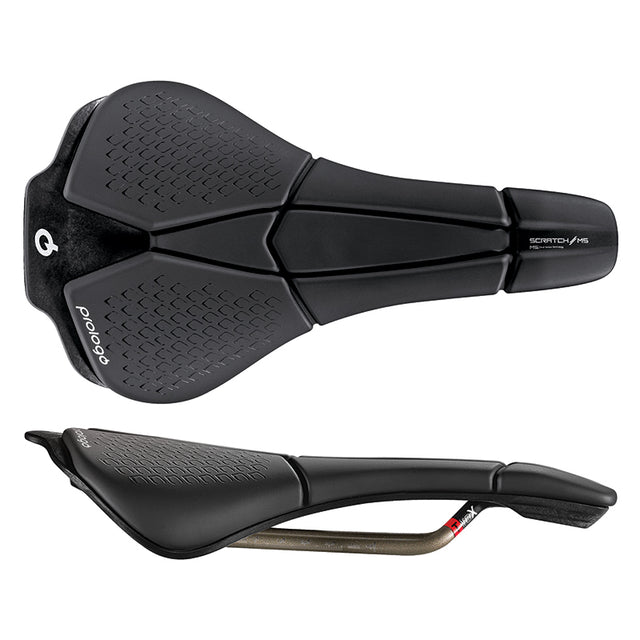 Prologo Scratch M5 Saddle - Tirox Hard Black 140 mm. "The Prologo Scratch M5 uses innovative technology in terms of size shape and ergonomics. They are suitable for many uses and disciplines. Thanks to the new design size and ergonomic ""T SHAPE"" SCRATCH M5 is suitable for Man / Woman. The new MSS- Multi Sector System improves comfort and performance and the active foams that separated from each other create 5 mapped zones that work individually supporting the normal pedaling movement both during the pushing and pulling phases. The round shape of the SCRATCH M5 allows the pelvis to rotate naturally creating stability and support for the lumbar areas. Despite the absence of a channel the open base is able to eliminate pressure peaks. "Ergonomic multicategory saddle
