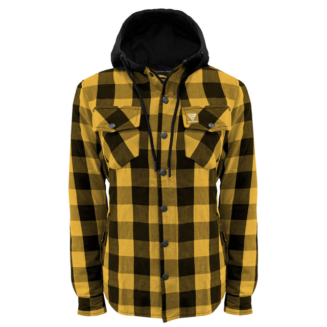 Find your perfect blend of style and safety with the Women's Protective Flannel Hoodie in Yellow & Black Checkered & Black Fleece Hood with Level 1 pads included. This Beyond Riders' selection is for those who navigate life's journeys with a keen sense of style and a high regard for protection. Ideal for the motorcycle or PEV rider who values a look that’s as versatile as their lifestyle.