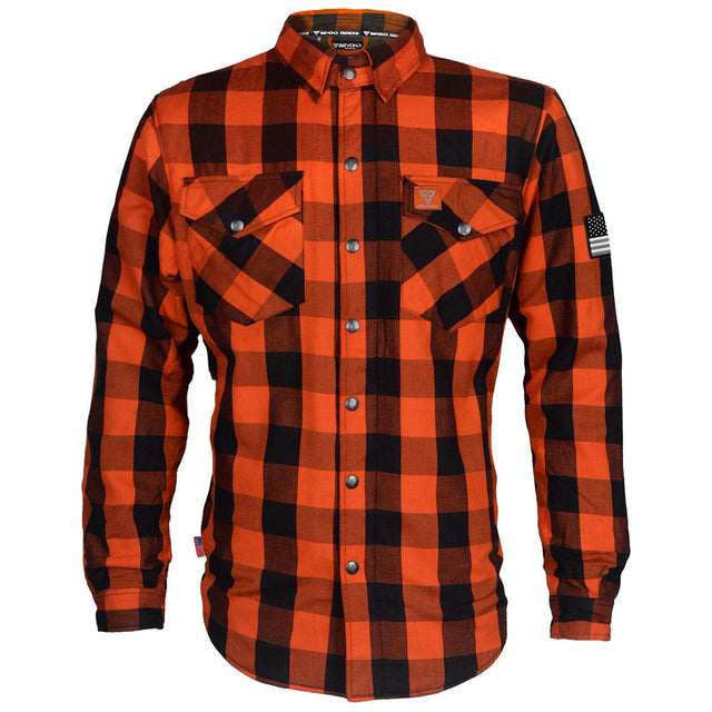 Protective Flannel Shirt - Orange and Black Checkered with Pads