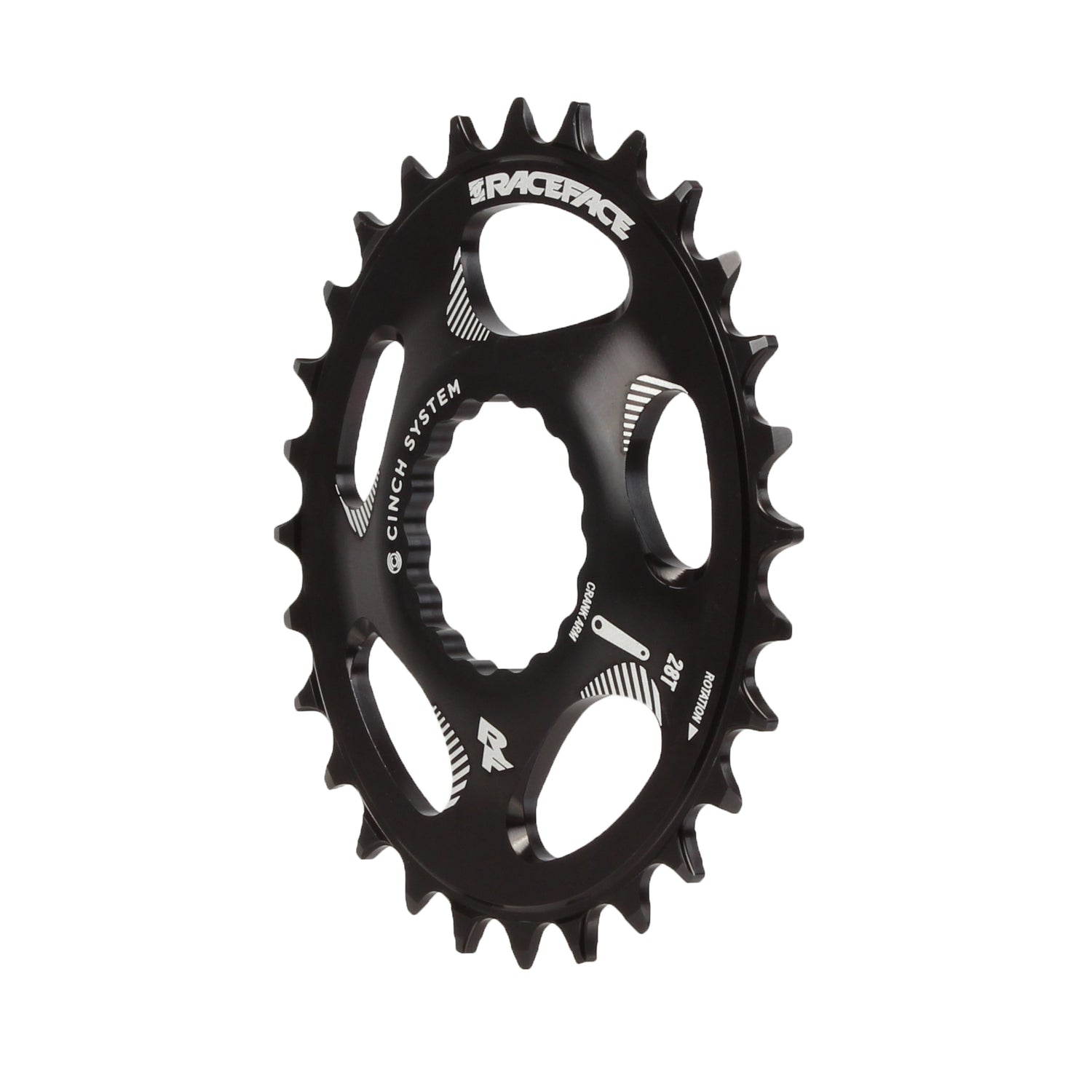 RaceFace Narrow Wide Oval Chainring: Direct Mount CINCH 28t Black. Cinch Oval rings help you put down the watts in the best part of our pedal stroke on your 10 11 or 12 speed drivetrains. Ovals provide enhanced traction control when compared to conventional round rings particularly in high torque low cadence riding scenarios. Weve got your timing clocked to improve on that grueling climb. Or simply make your personal pedal-shuttle a little more bearable. And by simply flipping the ring it becomes Super Boost compatible without losing the same excellent timing to help you maintain traction during the toughest part of your pushOptimized pedal stroke