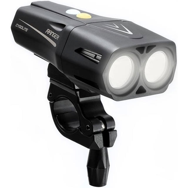- A super compact light great for both mountain and road which claims to have the best battery life on a bike light with this many lumens\n- Fully loaded with ultra high capacity cells, advanced microcontrollers, and powerful LEDs for unprecedented battery life engineered to go the extreme distance\n- Cycling Tuned Optics throws a long range, extra wide beam to cover road and mountain biking\n- 9 lighting modes: boost, high, medium, low, SteadyPulse, triple flash, day flash, walking, and zoom\n- Two button design allows scrolling through modes and adjusting brightness in each setting\n- Features a light lock to prevent the unit from turning on while stored\n- Includes a hard clamp handlebar mount with quick release that secures the light, headlight, and micro USB cable\n- Designed, engineered, and assembled in the USA