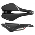 Super ergonomic, flat nose saddle with a short slender nose and wide tail for improved power transfer in or out of the saddle