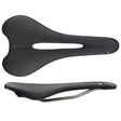 - Features an ergonomic curve to support the sit bones and a generous cutout to relieve perineal pressure\n- Padding is made from a lightweight polyurethane foam material that is 30% more shock absorbent than traditional foam\n- Features a curved two-axis shape that brings a rise towards the rear of the saddle and a bit of lift to the nose\n- Unique manufacturing technology adheres the saddle cover to the base without any visible seams, glue, stitching or staples