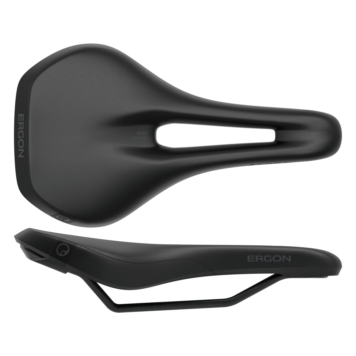 - Ergonomic MTB comfort saddle designed specifically around the female pelvis\n- Forward positioned and anatomically adapted relief channel prevents discomfort and numbness\n- Thicker and softer padding than SM models \n- SMC Sport Gel: Nylon composite shell with orthopedic comfort foam with gel inserts for optimum pressure relief\n- SMC: Nylon composite shell with orthopedic comfort foam padding\n- Recommended sizing for sit bone width: S/M 9-12cm, M/L 12-16cm