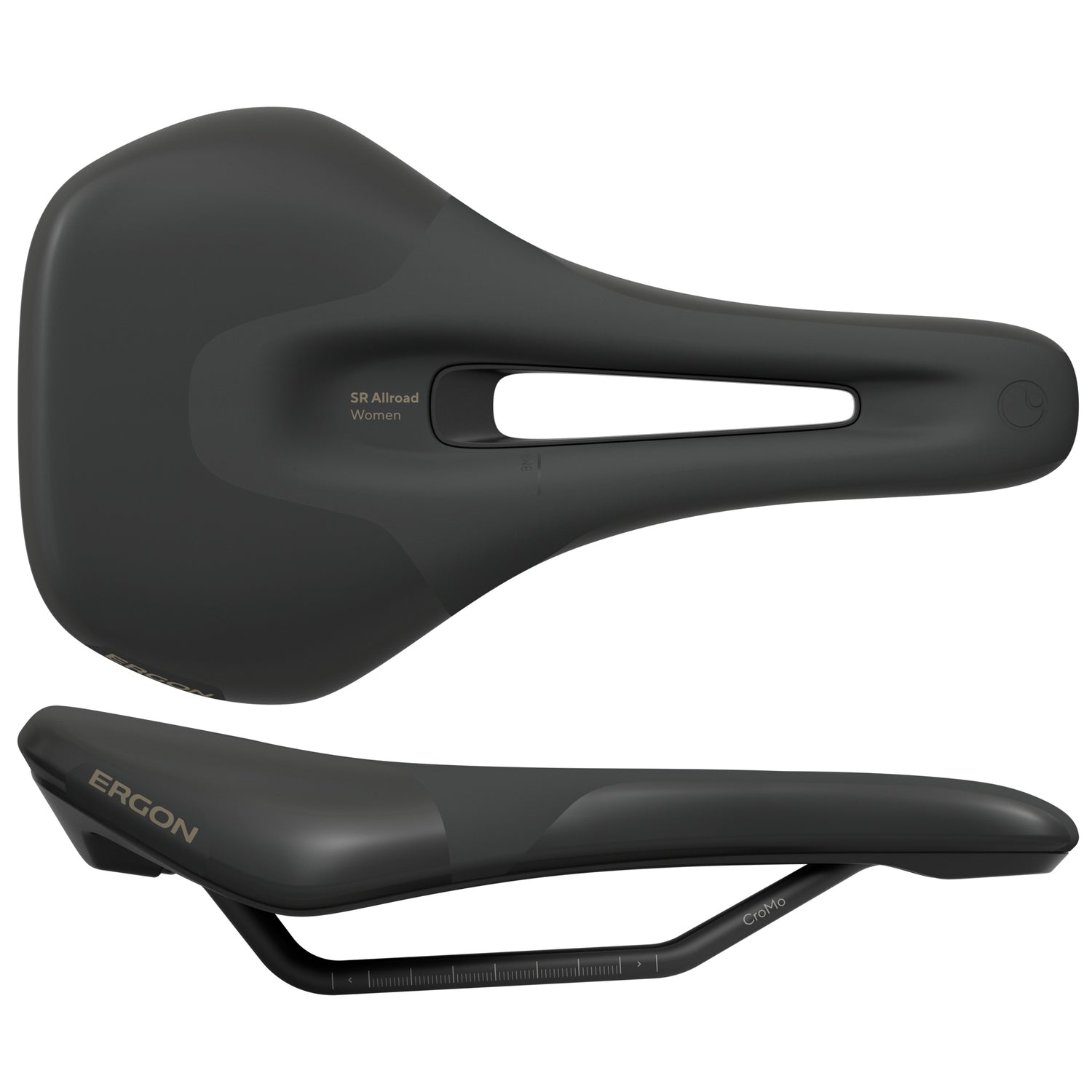 - Ergonomic road and gravel saddle designed to effortlessly follow pelvic movements, reducing pressure on sit bones\n- Forward positioned and anatomically adapted pressure relief channel prevents discomfort and numbness\n- Weather protection insert is included with Pro Carbon, Pro and Comp saddles\n- SR Allroad Pro Carbon: Carbon composite shell with orthopedic comfort foam with OrthoCell pads\n- SR Allroad Pro: Carbon composite shell with orthopedic comfort foam with OrthoCell pads\n- SR Allroad Comp: Nylon composite shell with orthopedic comfort foam\n- SR Allroad: Nylon composite shell with orthopedic comfort foam\n- Recommended sizing for sit bone width: S/M 9-12cm, M/L 12-16cm