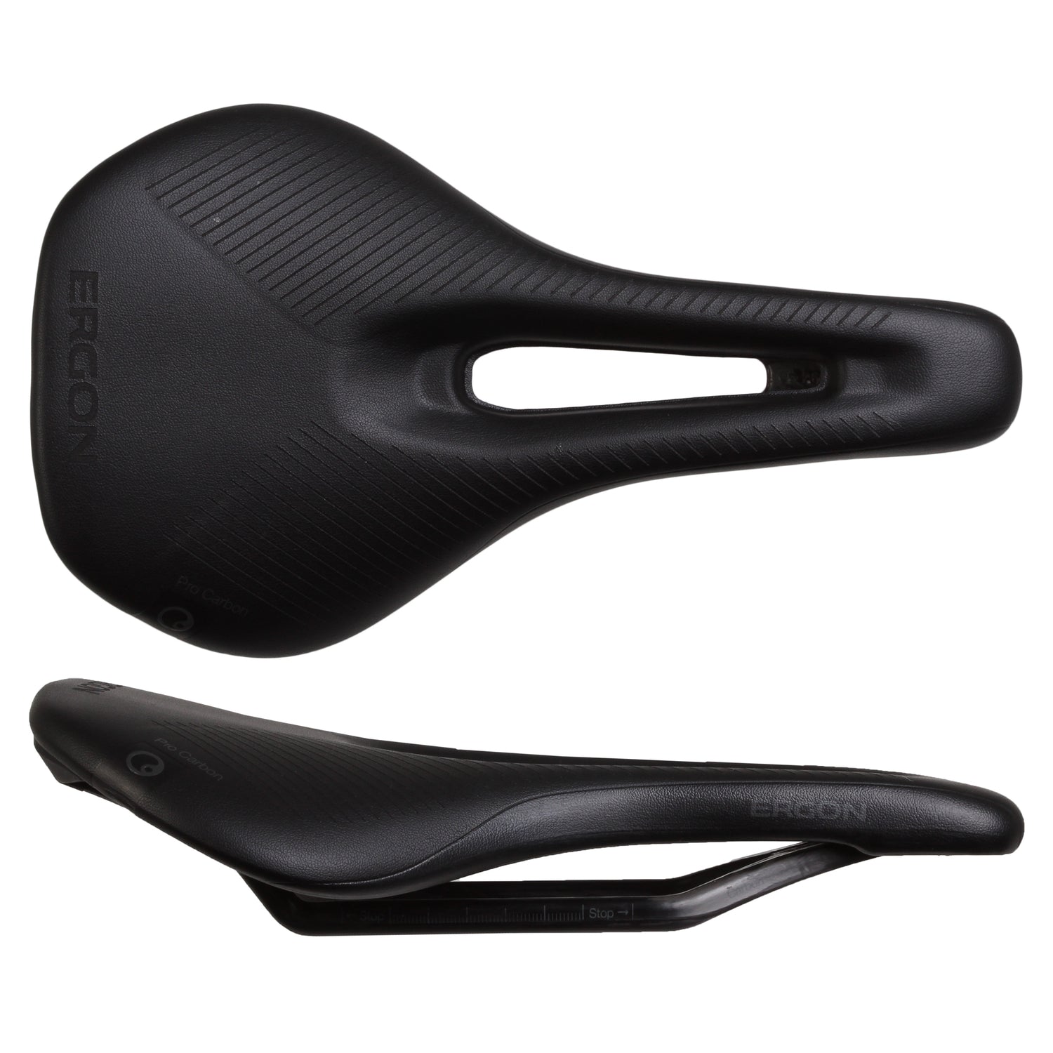 - Ergonomic Road saddle designed specifically around the female pelvis\n- Forward positioned and anatomically adapted pressure relief channel prevents discomfort and numbness\n- SR Pro Carbon: Carbon composite shell with orthopedic AirCell foam with OrthoCell pads \n- SR Pro: Nylon composite shell with orthopedic AirCell foam with OrthoCell inlays\n- SR Sport Gel: Nylon composite shell with orthopedic comfort foam with gel inserts for optimum pressure relief\n- Recommended sizing for sit bone width: S/M 9-12cm, M/L 12-16cm