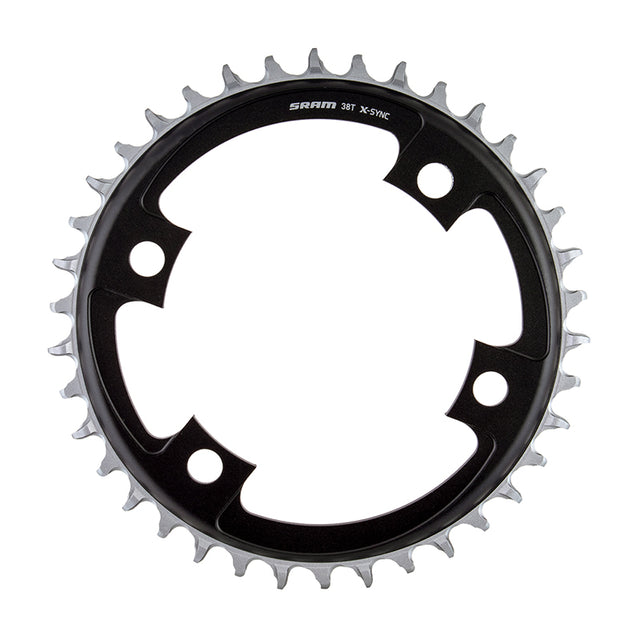 SRAM 38 Tooth 107mm BCD x 4-Bolt 1x12-Speed X-Sync Chainring Blast Black. SRAMs X-Sync Road Chainrings are designed for provide maximum control when used with AXS road cranksets.X-SYNC wide-tooth narrow-tooth chainring technology provides maximum chain control