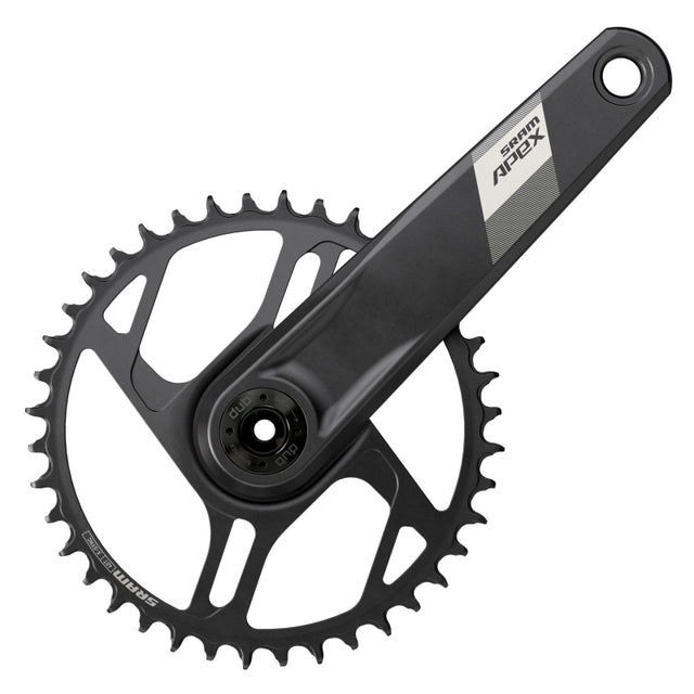 SRAM Apex 1 Wide Crankset - 175mm 12-Speed 40t Direct Mount DUB Spindle Interface Black D1. A single chainring with a wide-range cassette is a wonderfully clean way to tackle so many disciplines and SRAM is a 1x leader. The Apex 1 Wide crankset features aluminum crankarms a light and stiff DUB spindle and elegant and secure direct-mount X-SYNC aluminum chainrings for flawless chain management. The wide chainline accommodates wider tires for any type of adventure.Single-ring drivetrain simplifies functionality and reduces weight