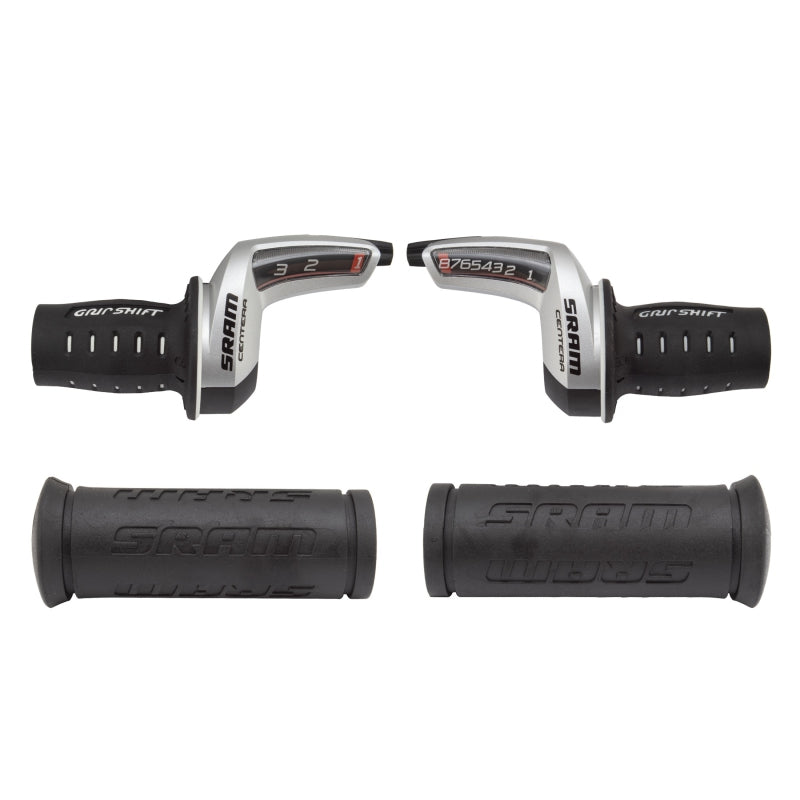 SRAM Centera 8 x 3 Speed Twist Shifter Set. Affordable shifters with the time-tested GripShift design and construction. Compatible with Shimano rear derailleurs designed for 9 or fewer cogs.Includes cables and stationary grips; housing sold separately