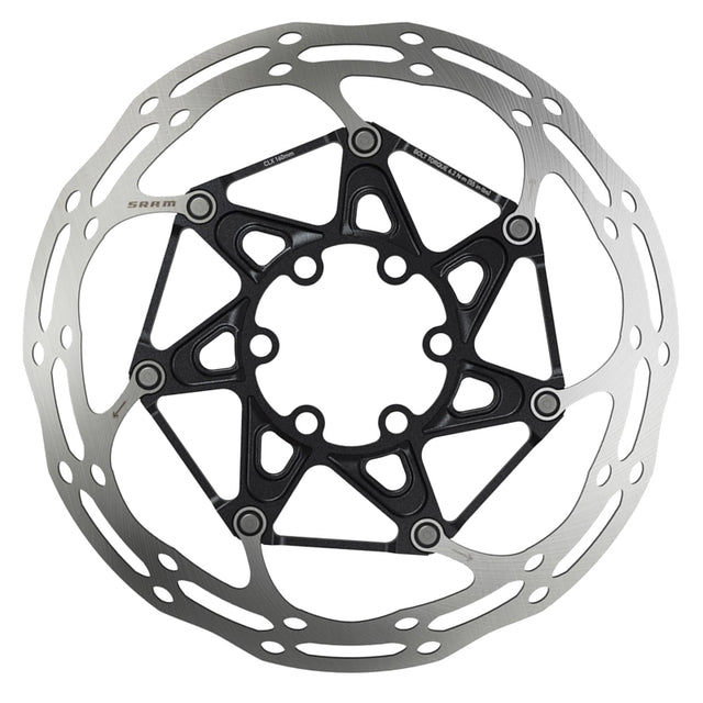 SRAM Centerline X Disc Brake Rotor - 160mm 6-Bolt Ti Bolts Silver/Black. Aluminum body with stainless steel braking surface designed to minimize brake noise.Rounded edge rotor