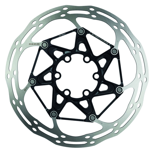 SRAM Centerline X Disc Brake Rotor - 180mm 6-Bolt Steel Bolts Silver/Black. Aluminum body with stainless steel braking surface designed to minimize brake noise.Rounded edge rotor