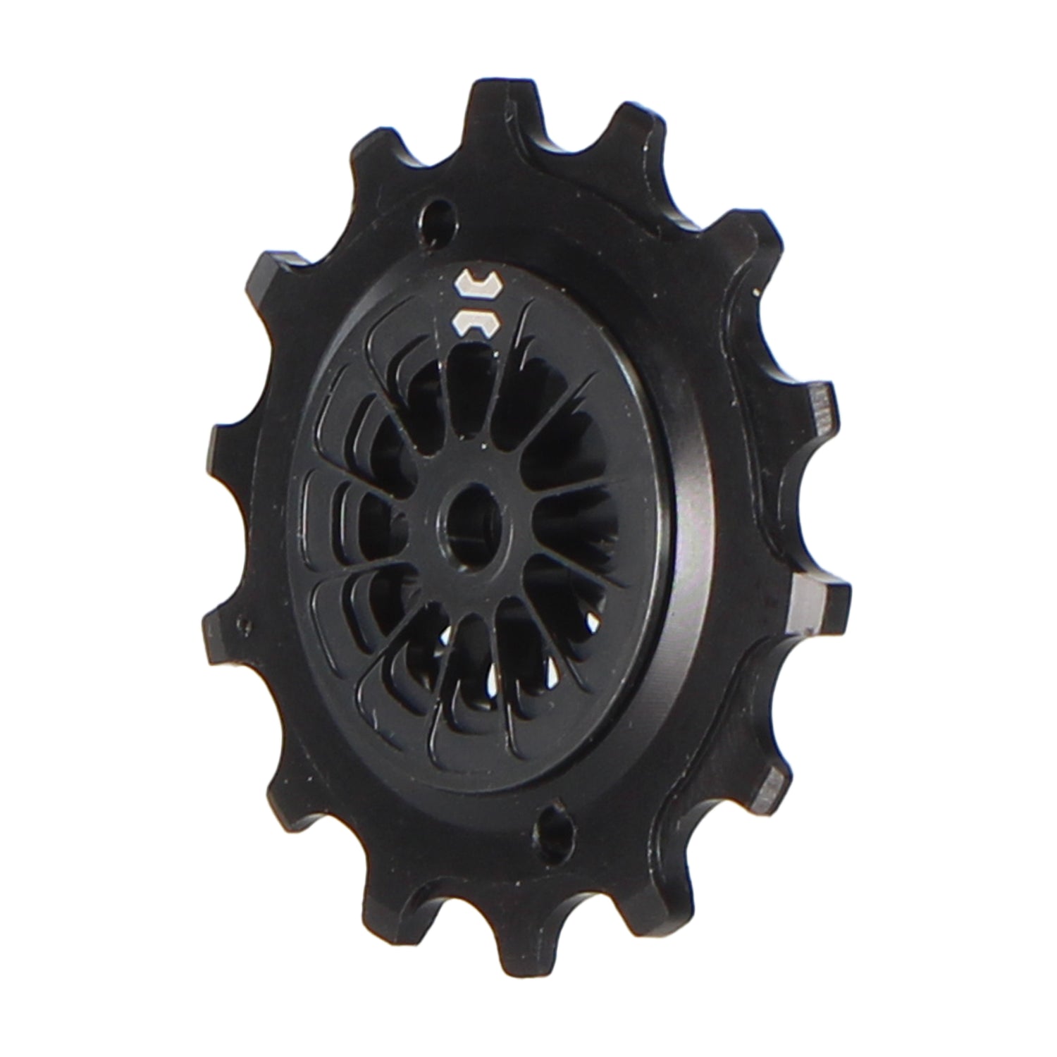- Replacement pulley wheels made with Teflon for durability and noise reduction. CNC machined aluminum inner body with Arnite plastic outer 12 toothed outer body\n- Compatible with SRAM 12sp Eagle AXS, XX1, X01, GX\n- Sold as individually