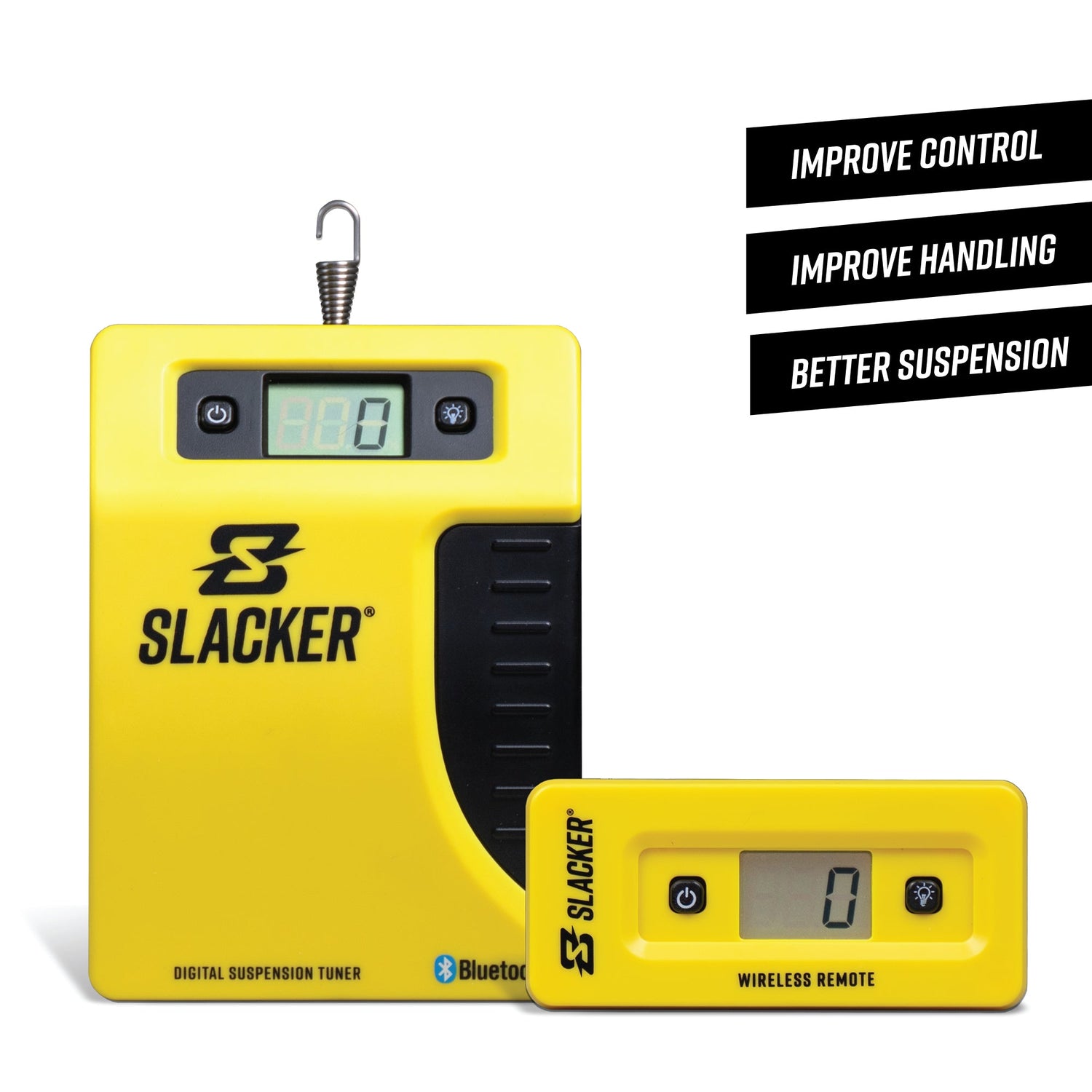 Slacker is a patented system that allows anyone to easily setup their suspension with no assistance. This easy-to-use system quickly mounts to motorcycles and mountain bikes and provides simple, fast, and precise measurements. Slacker shows real-time readings right on the bars using our optional wireless remote, or our free Slacker Virtual Remote smartphone app.