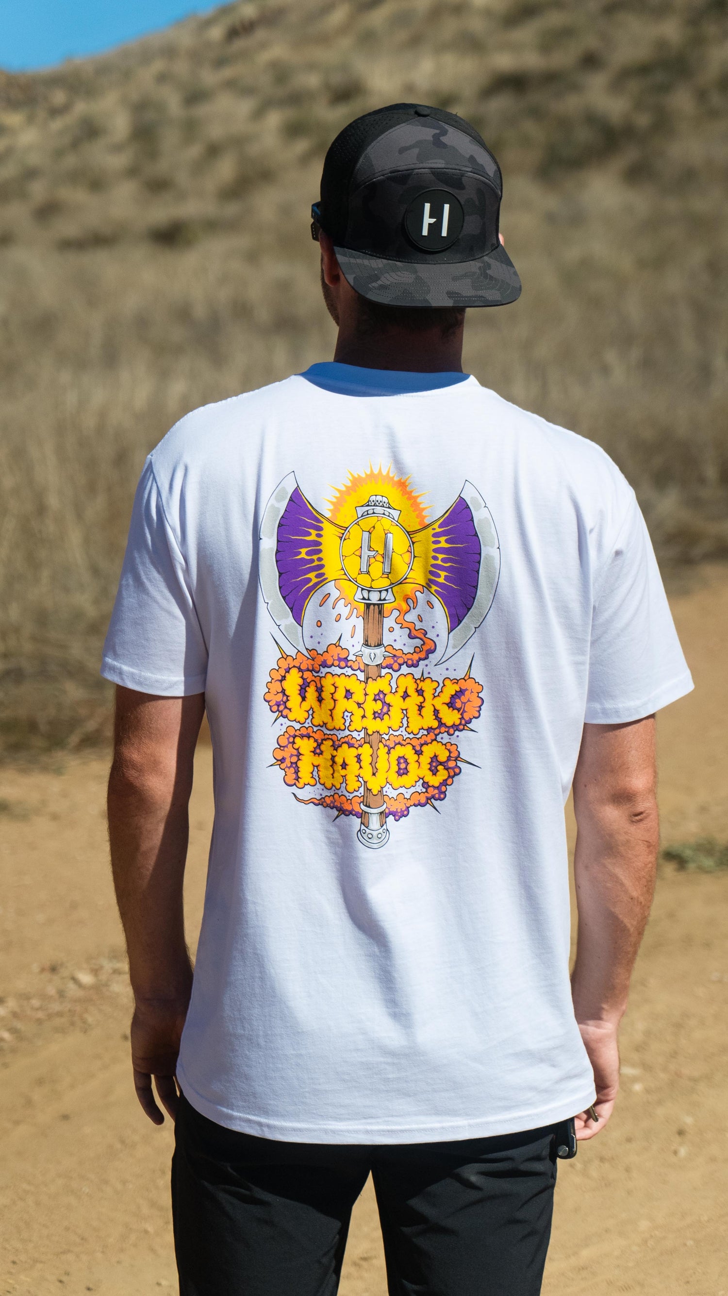 A custom structured 6 panel snapback hat with the Havoc logo.