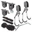 Handy storage solution designed for ceilings up to 12ft and bikes or gear up to 100lbs