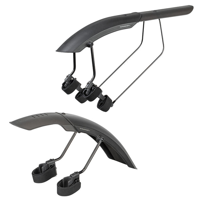 - The perfect quick-mount fender system that easliy attaches to bikes constructed from any material \n- Uses a hook and loop system to securely attach \n- Features adjustable aluminum struts for a perfect alignment\n- Fork width must be within 115-145mm for front fender and seatstays must be within 92-125mm for rear fender when using M1 and M2 fender set