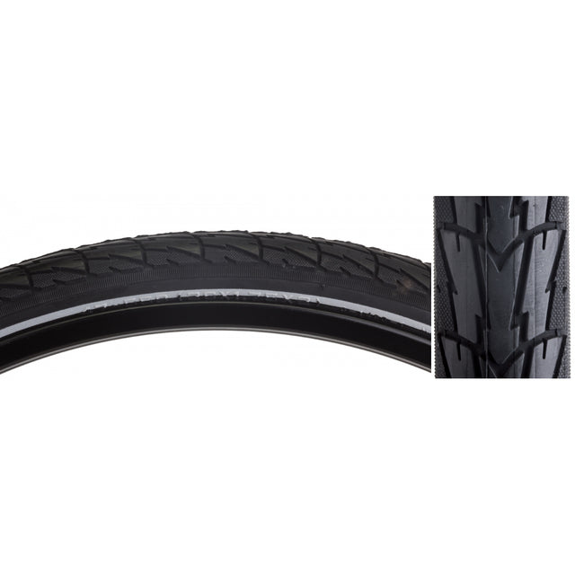 City/trekking tire with Kevlar to reduce punctures, reflective sidewall for visibility.