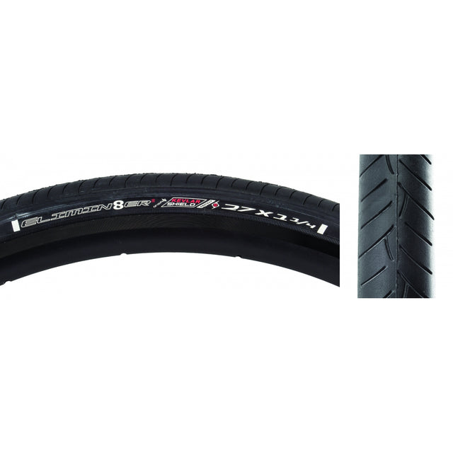 TIRE SUNLT 27x1-1/4 BK/BK FLATSHLD WIRE BELTED