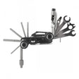 Tools include: 2, 2.5, 3, 4, 5, 6, & 8 mm Allen wrenches, 8, 9, & 10 mm hex bolt wrenches (each 2pcs), mini pedal wrench, Phillips & flat screw drivers universal chain tool, spoke wrenches for 14g & 15g, 2 tire levers, stainless knife, bottle opener T25 Torx wrench for disc brakes, 10mm