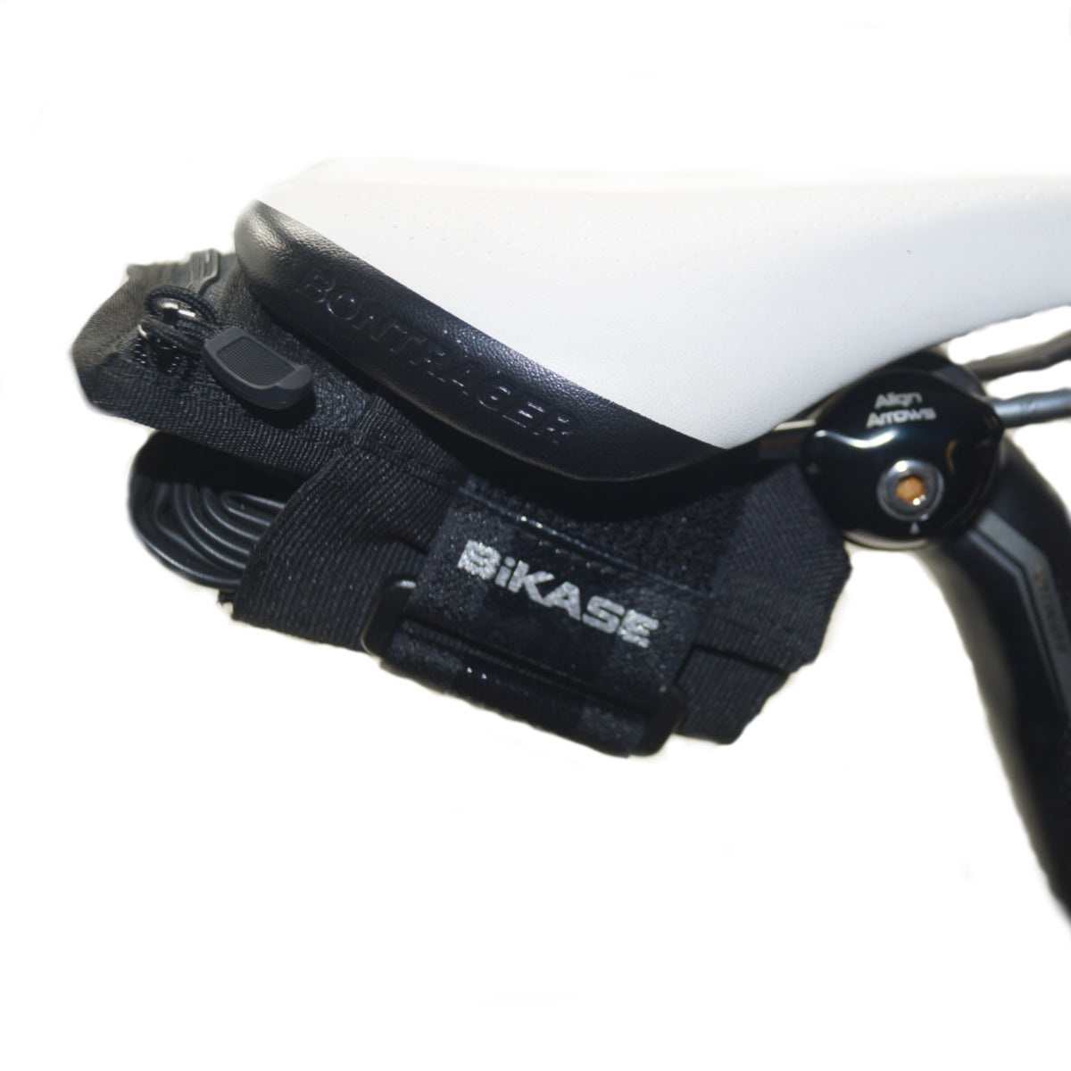 Compact holder for Bike Tube and Tools. Separate compartments for tools, CO2, & tools so they won't fall out. Fits narrow and wide/big tubes. Works great on bikes with Dropper Posts.