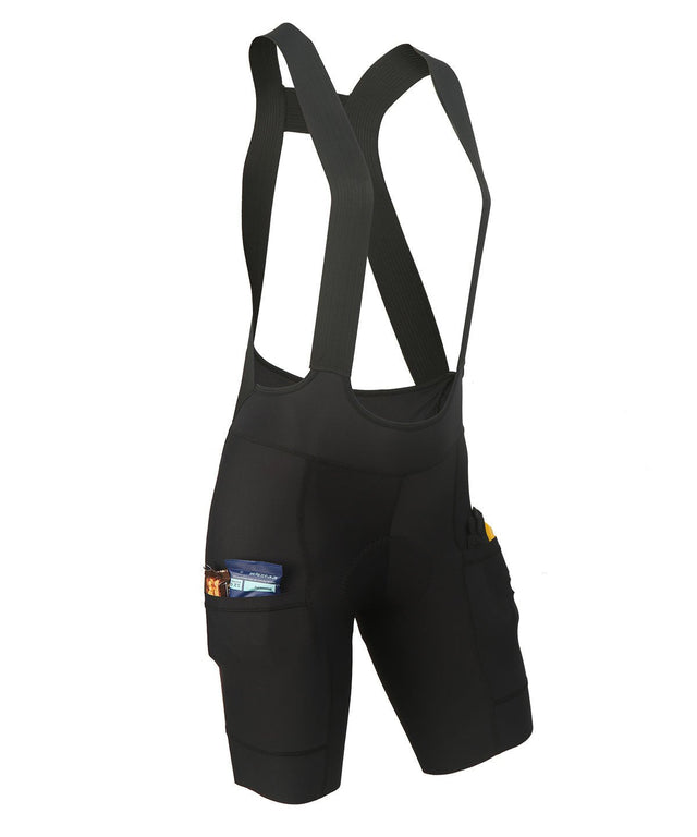 A high performance bib short with our 6+ hour chamois, integrated leg grippers, wide, supportive bib straps, and three cargo pockets for maximum mileage and comfort.
