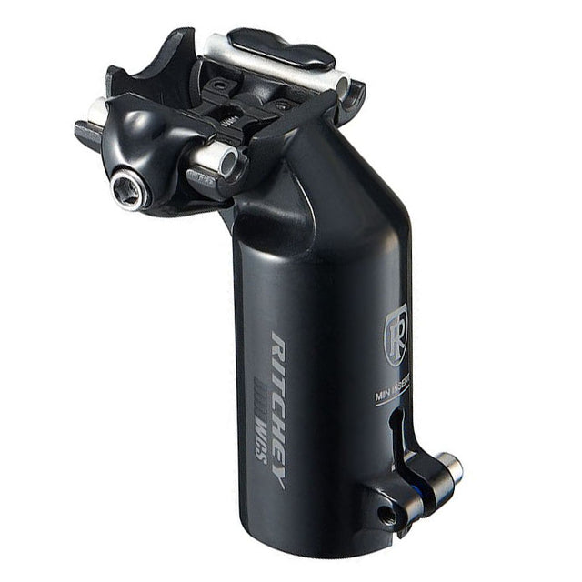 - For frames with integrated seat mast, different offset heads for tuning cockpit setup\n- SideBinder 1-bolt fore/aft and tilt adjustable (7x7mm) rail clamp \n- 3D forged alloy body and head with one-bolt pinch clamp, black finish